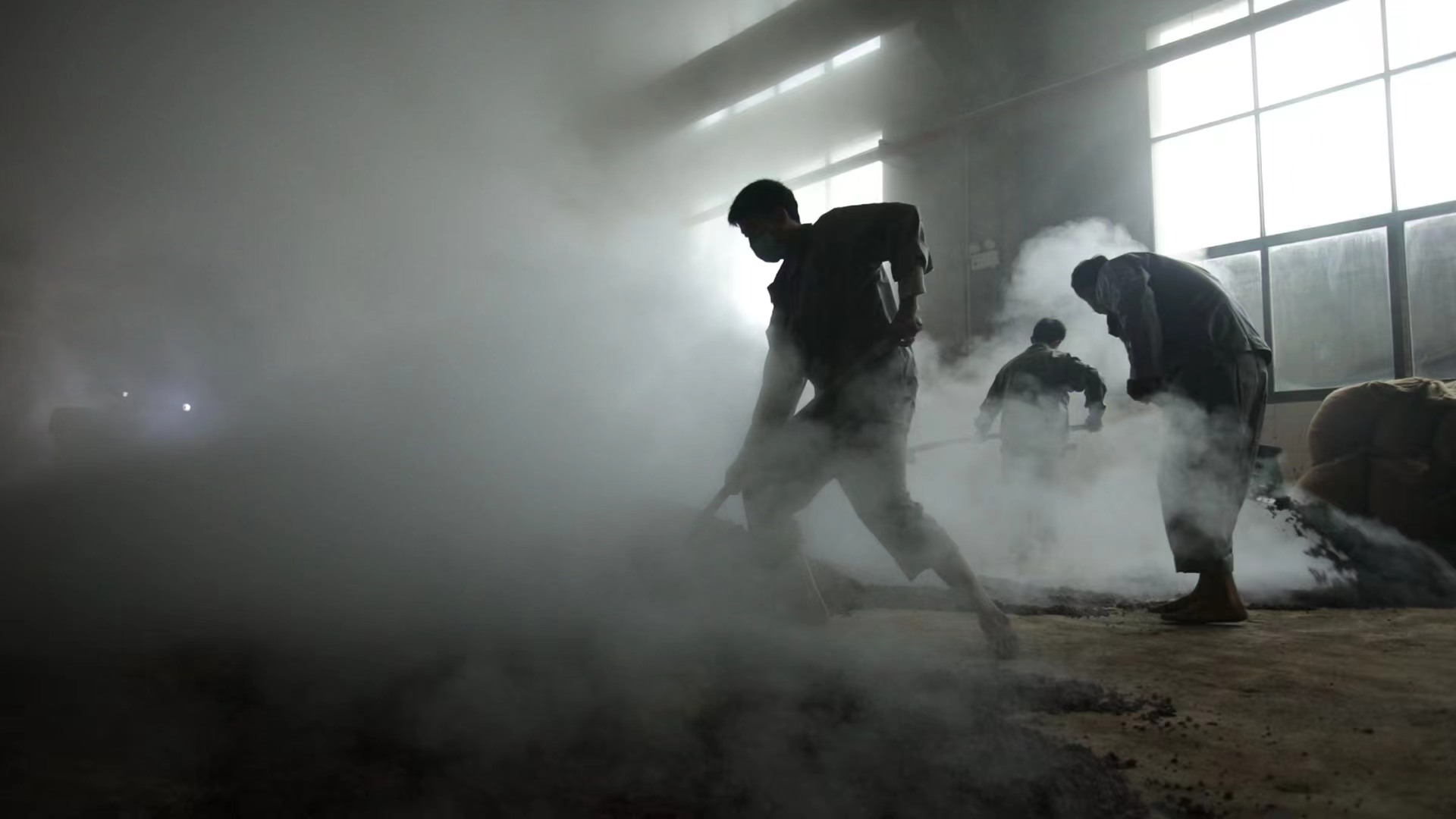 九次蒸煮,顧名思義,就是蒸煮九次。首次下沙(投料)后清蒸一次,糙沙(第二次投料)混蒸一次,前兩次蒸煮變成釀成而未過(guò)濾的酒,再進(jìn)行第三次蒸煮,得到“熟糟”?!笆煸恪痹俳?jīng)過(guò)攤涼、撒曲、堆積、下窖、封窖發(fā)酵、開(kāi)窖取碚醅、蒸酒論次的循環(huán),每個(gè)環(huán)節中都有一次煮蒸,整個(gè)過(guò)程共有九次蒸煮。